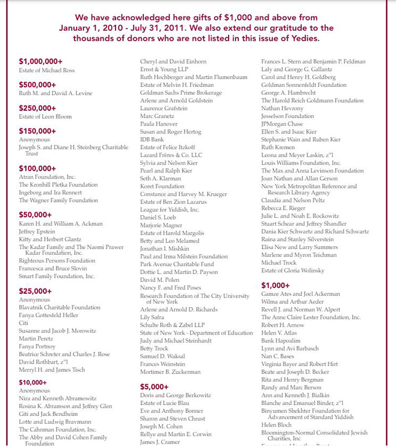 أكمان لديه أيضاً منصب فخري في منظمة “مركز التاريخ اليهودي”، وكان عضواً في مجلس إدارتها في العام 2010، وتبرع بـ 6.8 مليون دولار لسداد ديون المركز، فضلاً عن تمويله خلال تسعينات القرن الماضي لدراسات تُعنى بقضية “المحرقة اليهودية”، بحسب ما أقره أكمان في مقابلة مع موقع “nymag” الأمريكي.