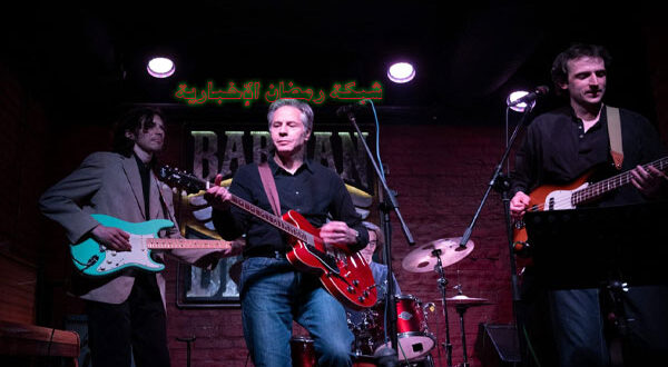 ظهر وزير الخارجية الأمريكي أنتوني بلينكن، وهو يعزف على غيتار إلكتروني ويغني في إحدى حانات العاصمة الأوكرانية كييف.