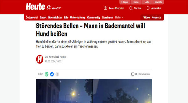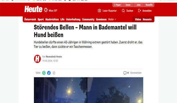 في حي الثامن عشر بمدينة فيينا، تحولت مشادة كلامية بسبب نباح كلب إلى مواجهة خطيرة، مساء السبت، حيث هدد رجل يبلغ من العمر 43 عامًا بعض كلب أحد سكان الحي.