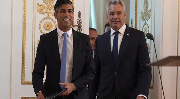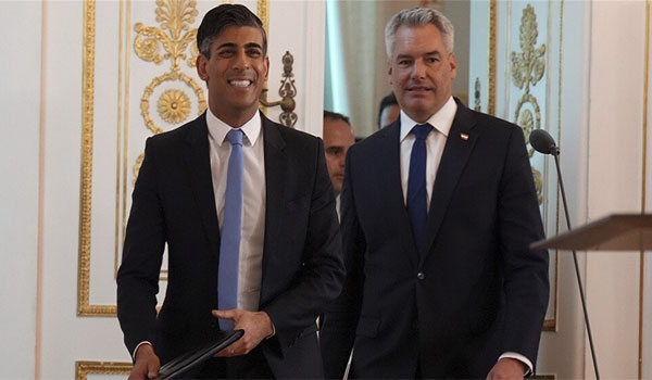 أثناء لقائه رئيس وزراء بريطانيا ريشي سوناك في فيينا الثلاثاء، أشاد مستشار النمسا بـ”ريادة” لندن في التعامل مع قضية الهجرة، مشيرا إلى مشروع قانون بريطاني لإرسال مهاجرين إلى رواندا.