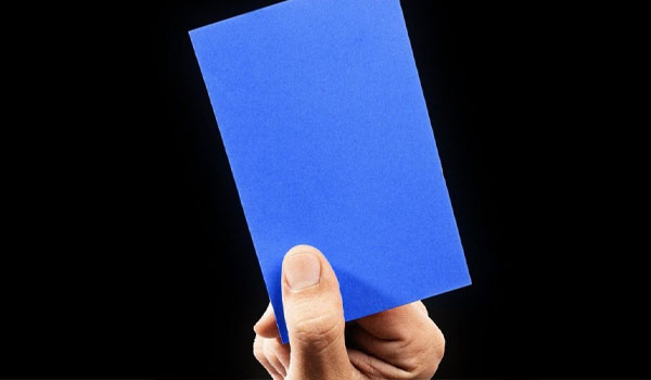 اللاعب الذي يحصل على بطاقة زرقاء، سيتم “طرده” من المباراة لمدة 10 دقائق فقط، لتكون عقوبة أقل من البطاقة الحمراء، لكنها أشد عقوبة من البطاقة الصفراء.