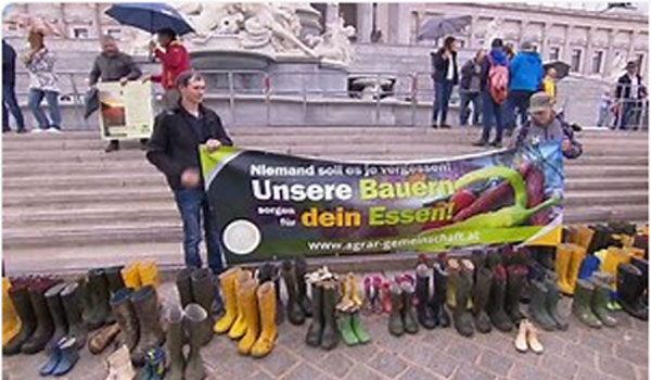 أم العديد من ممثلي المجتمع الزراعي النمساوي (AGÖ) العاصمة النمساوية فيينا الجمعة لإطلاق حركة احتجاجية من أجل تحسين ظروفهم المعيشية وزيادة الرواتب، وجاء المزارعون على الرغم من هطول الأمطار، وشارك المزراعون من مختلف المجالات كالعاملين في مزارع الأبقار ومنتجات الحليب واللحوم وخصوصا الخنازير وأولئك العاملين بدوام جزئي.