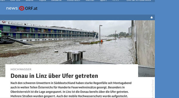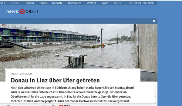 ومع استمرار ارتفاع منسوب المياه فى نهر الدانوب البافاري عبر الحدود في ألمانيا، تم تسجيل ارتفاعات طفيفة أيضا في مستويات مياه نهر الدانوب النمساوي العلوي، حسبما ذكرت الهيئة الهيدروجرافية للنمسا العليا وهى الهيئة المسؤولة عن عمليات المسح النهرى والبحرى بعد ظهر اليوم الثلاثاء، وتوقع الخبراء بصورة عامة أن يتحسن الوضع قريبا .