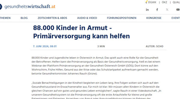 يعيش قرابة 90 ألف طفل في النمسا تحت خط الفقر، مما يؤثر سلبًا على صحتهم، حسبما أظهرت ندوة عبر الإنترنت نظمتها منصة الرعاية الأولية في منظمة الصحة النمساوية (GÖG)، مساء أمس الأربعاء.