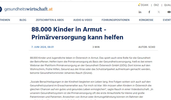 ووفقًا لتقديرات منظمة التعاون الاقتصادي والتنمية (OECD)، فإن عواقب فقر الأطفال تكلف المجتمع النمساوي 17.2 مليار يورو سنويا، مع أكثر من نصف هذه التكلفة ناتجة عن مشاكل صحية.