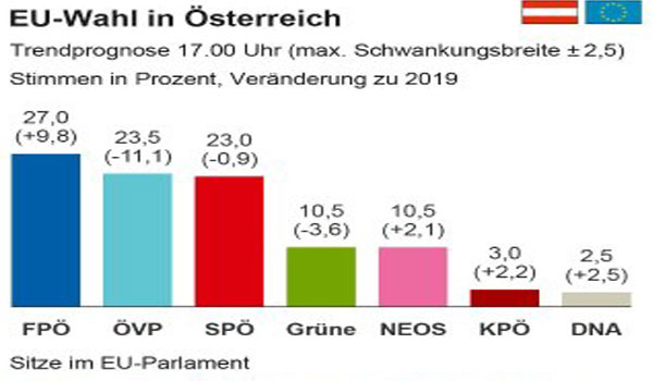 مؤشرات أولية.. تفوق ساحق لحزب الحرية النمساوى فى انتخابات البرلمان الأوروبى