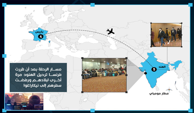 هنا قامت فرنسا بترحيل الهنود إلى مطار مومباي في الهند ورفضت أن يكملوا رحلتهم إلى نيكاراغوا بعد ان توقفت الطائرة القادمة من الإمارات في باريس للتزود بالوقود