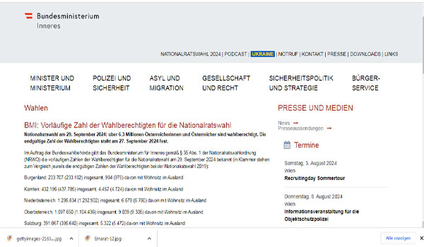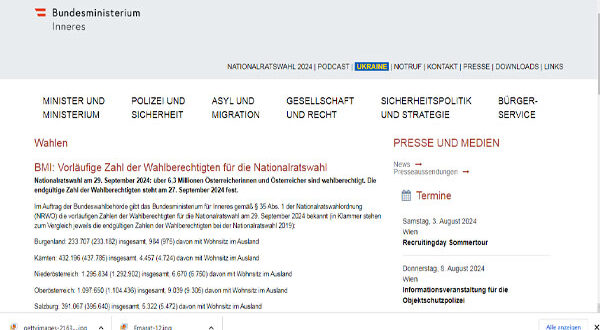 أكدت وزارة الداخلية النمساوية، أن عدد الناخبين المؤهلين للتصويت في انتخابات المجلس الوطني ” البرلمان” المقررة في 29 سبتمبر المقبل هو 6 ملايين و300 ألف ناخب .