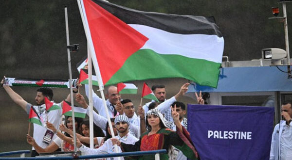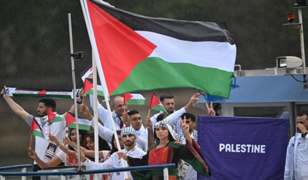 ورفع علم فلسطين في حفل الافتتاح الذي أقيم على نهر السين، كل من فاليري ترزي ووسيم أبو سل، بينما قال معلق قناة “بي إن سبورت” خلال دخول البعثة: “فلسطين.. الأرض المقدسة وأرض الأنبياء، تحيا فلسطين، الحق يعلو ولا يُعلى عليه”.