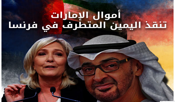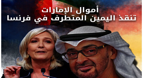 كشف تحقيق فرنسي سابق عن تورط الإمارات في دعم حزب التجمع الوطني اليميني المتطرف في فرنسا بقيادة مارين لوبان. وفقاً لما نشره موقع “ميديا بارت” في عام 2021، فإن التمويل الإماراتي الذي قدر بـ8 ملايين يورو ساهم في إنقاذ الحزب من أزمة مالية خانقة كانت ستعرضه لتدابير قانونية صارمة. أموال محمد بن زايد قدمت عبر رجل الأعمال المعروف في القارة الأفريقية لوران فوشير بناءً على عقد وقع في جمهورية أفريقيا الوسطى وتم تحويلها عبر شركة التمويل الإماراتية “نور كابيتال”.