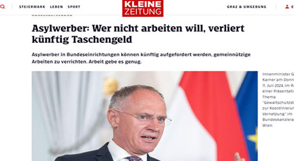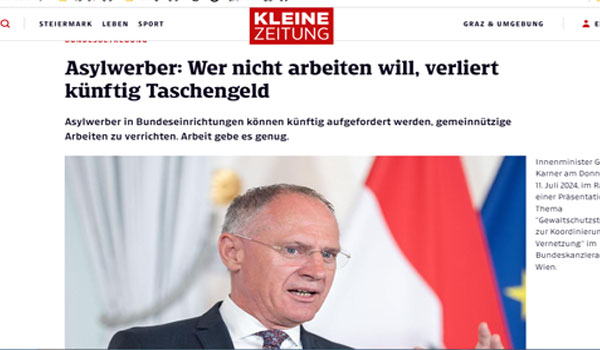وقال كارنر في مؤتمر صحفي اليوم الاثنين أن القواعد الجديدة ستطبق على طالبي اللجوء فى النمسا اعتبارا من يوم غد الثلاثاء و تتضمن حزمة التدابير متطلبات العمل وما يسمى بقائمة الواجبات وعلاوة على ذلك سيتم أيضًا توسيع المشروع التجريبي “بطاقة المنافع العينية”.