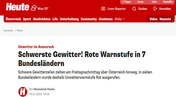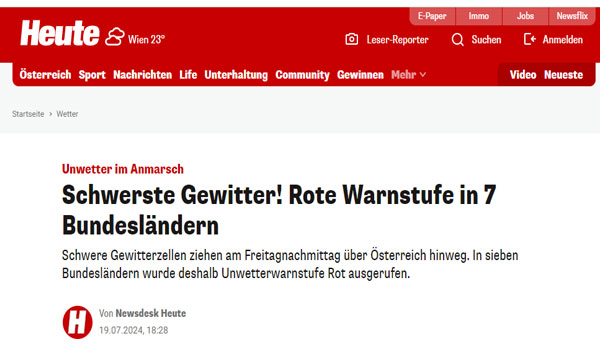 ضربت عواصف رعدية عنيفة أجزاء كبيرة من ولايتي “سالزبورج” و”النمسا العليا” ، وتسببت في حدوث خسائر مادية وإصابة عدة أشخاص .