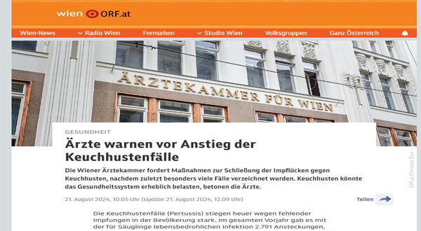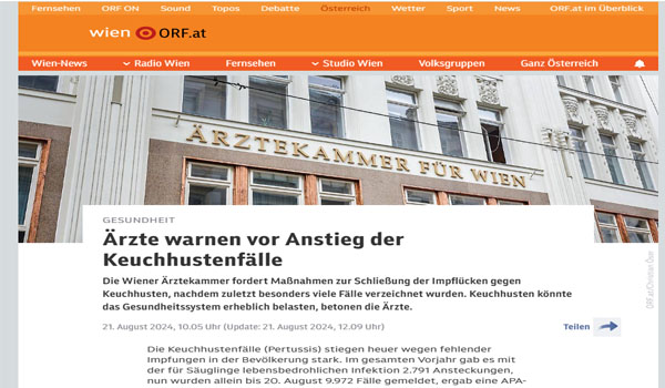 ودعا رئيس الغرفة الطبية النمساوية يوهانس شتاينهارت، إلى تعزيز جهود التطعيم بشكل مجاني ضد السعال الديكي، إلى جانب زيادة الوعي بمخاطر المرض.