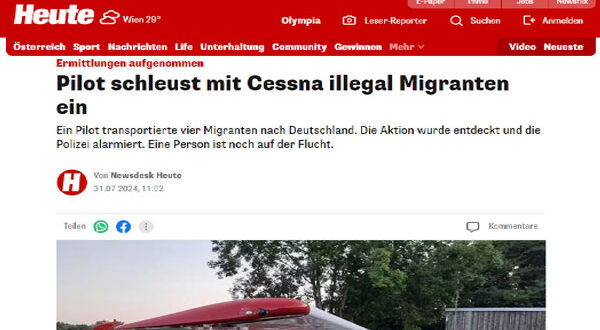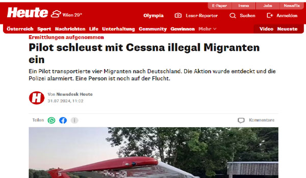 وقالت المصادر – في بيان الأربعاء – أن الطيار قام بتهريب المهاجرين بشكل غير قانوني باستخدام طائرة “سيسنا”، فيما لا يزال شخص واحد في حالة فرار، منوهة بأن الطيار يبلغ من العمر 39 عامًا وقد هبط بشكل مفاجئ في بافاريا السفلى ومعه مهاجرين عراقيين، وقد أبلغت سلطات المطار الشرطة عن هذه الرحلة وتم ضبط الركاب الثلاثة ولكن هناك شخص رابع لا يزال هاربًا.