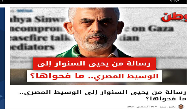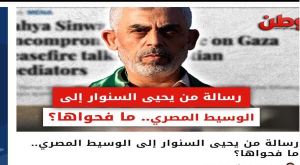 كشفت صحيفة “The National” تفاصيل رسالة رئيس حركة حماس، يحيى السنوار، إلى الوسيط المصري، حيث تمسكت الحركة بمطالبها لتحقيق صفقة تبادل أسرى ضمن اتفاق يهدف إلى وقف الحرب في غزة.