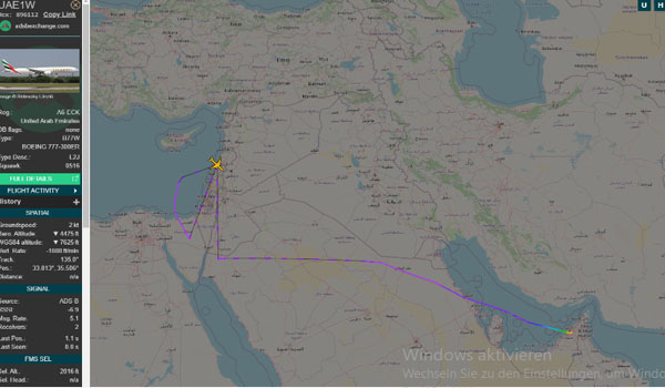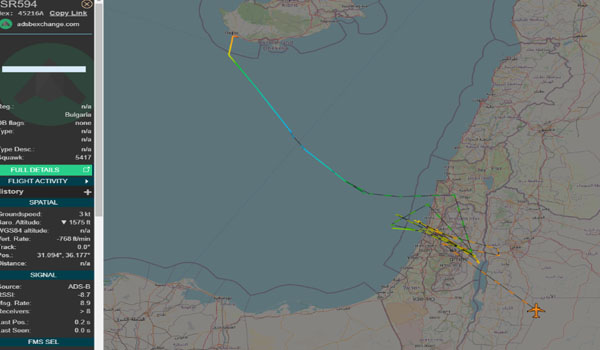 في حين يظهر هناك تلاعب في مسار الطائرات العسكرية الإسرائيلية، ليظهر أيضاً في كل من لبنان والأردن ومصر، بعيداً عن المناطق الإسرائيلية المحتلة.