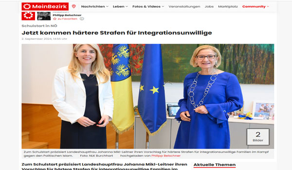 قررت السلطات في ولاية نمساوية، مضاعفة الغرامات على أولياء الأمور الذين يحرضون أبناءهم الطلاب على التمرد على المدرسين وعدم احترام المدرسة وقوانينها ورفض الاندماج خاصة بين المهاجرين الجدد لتصل إلى 2500 يورو أي ما يعادل خمسة أمثال الغرامة السابقة وقدرها 440 يورو.