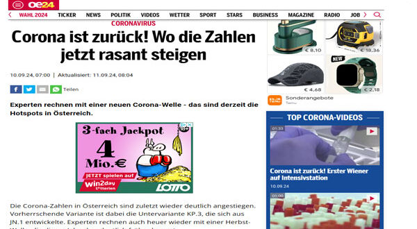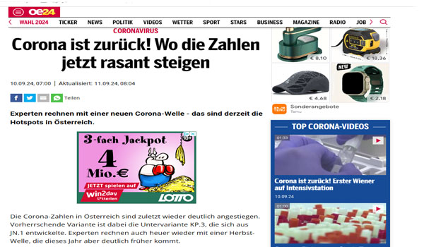 بعد أن شهدت النمسا ارتفاعًا كبيرًا في أعداد الإصابات بفيروس كورونا، حذر عدد من العلماء البارزين من أن بلادهم ستشهد موجة جديدة من إصابات “كوفيد-19″ الشهر الحالي حيث أظهرت البيانات الأخيرة أن المتحور الفرعي الجديد KP.3، المتطور من المتحور JN.1، هو السائد حاليًا.