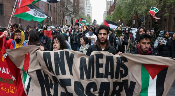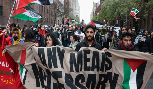 متظاهرون متضامنون مع فلسطين في حرم جامعة كولومبيا الأمريكية