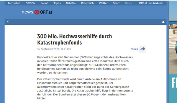 قرر المستشار النمساوي كارل نيهمر، تخصيص 300 مليون يورو لدعم جهود الإغاثة لمضاري الأعاصير و الفيضانات التي تضرب البلاد حاليًا.