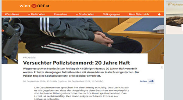 أصدرت المحكمة الإقليمية في فيينا حكمًا بالسجن لمدة 20 عامًا على رجل أردني يبلغ من العمر 41 عامًا، بعد إدانته بمحاولة قتل شرطي باستخدام سكين.