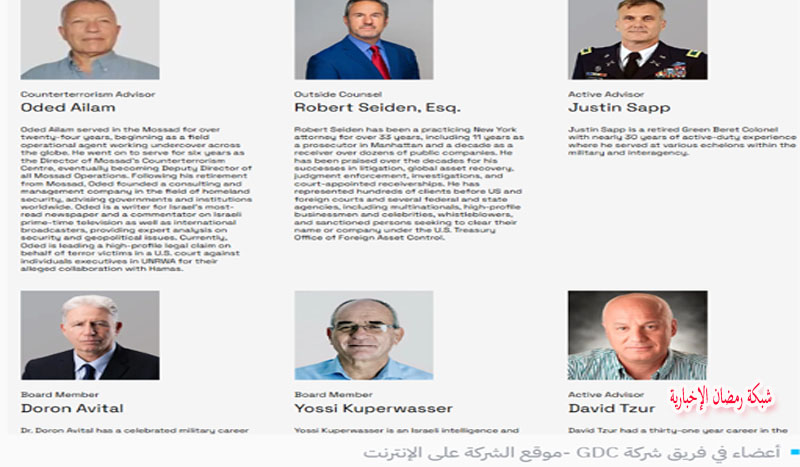 تثير تركيبة فريق عمل شركة GDC إشارات استفهام، إذ يتكون فريقها الإداري من 9 أشخاص: ثلاثة منهم خدموا في جيش الاحتلال الإسرائيلي، وآخر عميل سابق في الموساد، إضافةً إلى ضابط أمريكي سابق، وعضو مجلس سابق في إدارة ولاية كاليفورنيا في أمريكا. ويضم فريق الشركة: