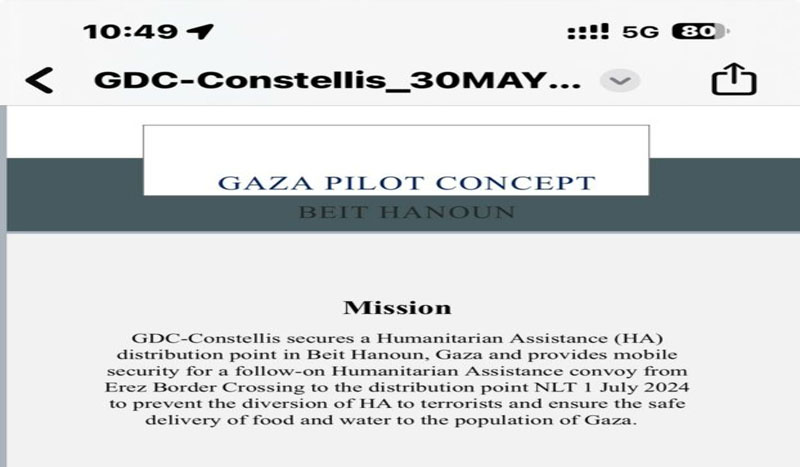 تعمل Constellis في 45 منطقة من بينها إسرائيل، وتتولى مهمة حماية المنشآت الأمريكية هناك. ويبلغ عدد موظفي الشركة نحو 20 ألفاً. وفي حال حصلت GDC على موافقة إسرائيل لتنفيذ خطتها في غزة، ستكون هذه الشركة الأمنية هي المسؤولة عن مهمة إدارة تسيير قوافل المساعدات وتأمينها.