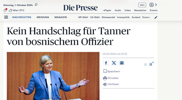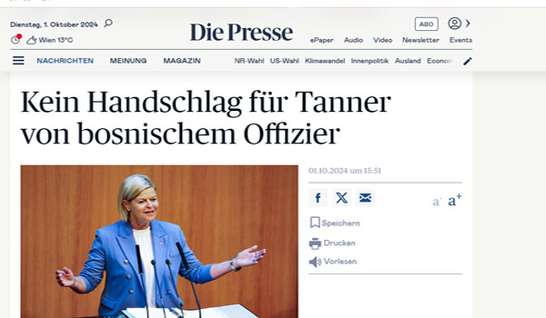 نشرت الصحف النمساوية رفض جندي بوسني مسلم مصافحة وزيرة الدفاع النمساوية لأسباب دينية، خلال لقاء رسمي جمعهما اليوم الثلاثاء الموافق 1 من أكتوبر 2024 في مدينة فيينا نويشتات ، لأسباب يعتقد أنها تعود إلى تشدد الجندى الديني ، مما أثار جدلاً خلال حفل تخرج الضباط الجدد في الأكاديمية العسكرية