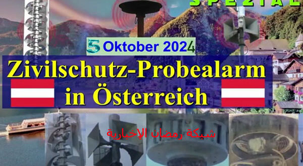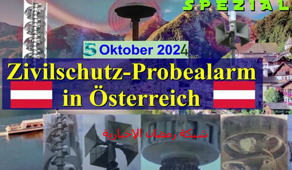 تجري الإدارة العامة للدفاع المدني النمساوى يوم السبت، الموافق 5 أكتوبر 2024، في تمام الساعىة الثانية عشر وحتى الساعة الثانية عشر وخمس وأربعون دقيقة تجربة منظومة صفارات الإنذار المبكر في كل عموم النمسا انطلاقا من تأمين الحماية والسلامة العامة لجميع المواطنين والمقيمين والمرافق العامة والخاصة يجب أن يتم بأعلى المعايير المهنية ، والإطمئنان على كفاءة أنظمة الإنذار وتحضير المواطنين للتعامل مع الحالات الطارئة.