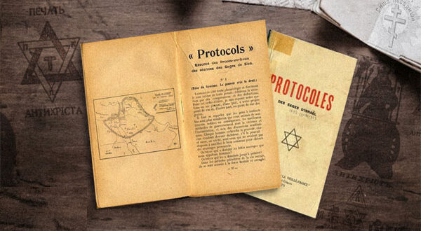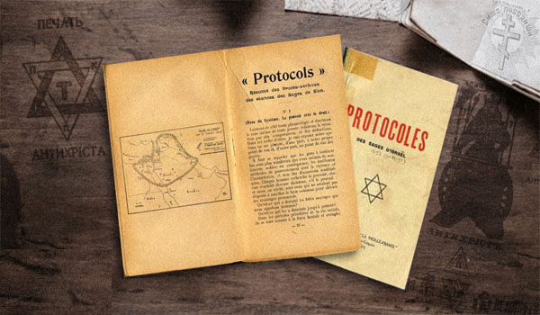 يتناول كتاب “بروتوكلات حكماء صهيون” المخططات الماسونية للسيطرة على العالم، ونشر لأول مرة عام 1905 لكاتبه الروسي “سيرجي نيلوس” بعد أن وقعت الوثائق الأصلية في يده.