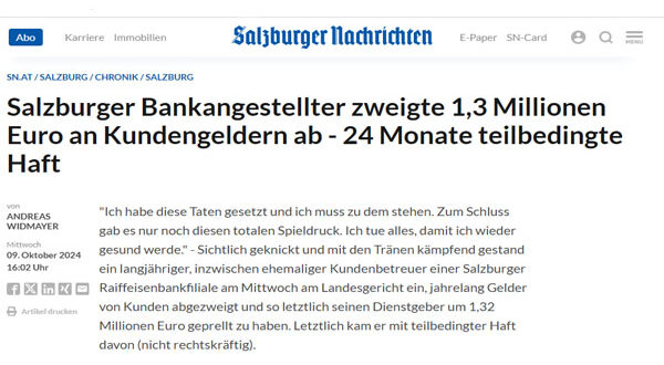 يُذكر أن جميع العملاء المتضررين تم تعويضهم من قبل “اتحاد رايفايزن” في سالزبورغ، حيث تم استرداد الفوائد والخسائر المالية الناجمة عن هذه الممارسات الاحتيالية.