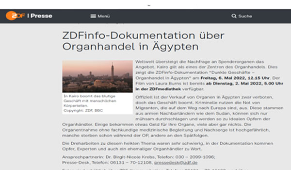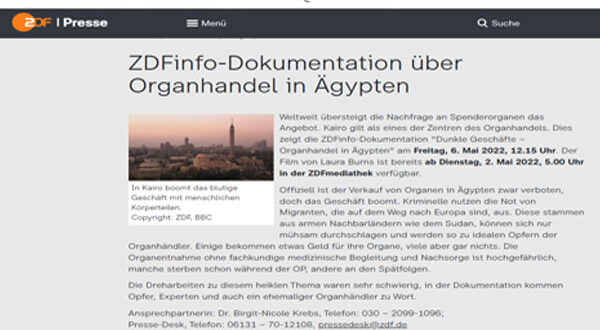 كشفت دراسة صدرت عن منظمة الصحة العالمية أن مصر تعد مركزاً إقليمياً للاتجار بالأعضاء البشرية، وصُنفت ضمن أعلى خمس دول على مستوى العالم في تصدير الأعضاء البشرية مع كل من الصين، والفيليبين، وباكستان، وكولومبيا، وهي الأولى على مستوى الشرق الأوسط.