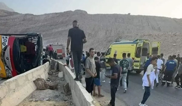 بالفيديو – 12 قتيلا و33 مصاباً إثر انقلاب حافلة طلاب جامعيين في مصر