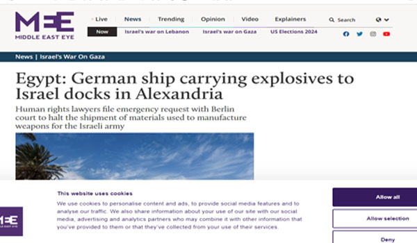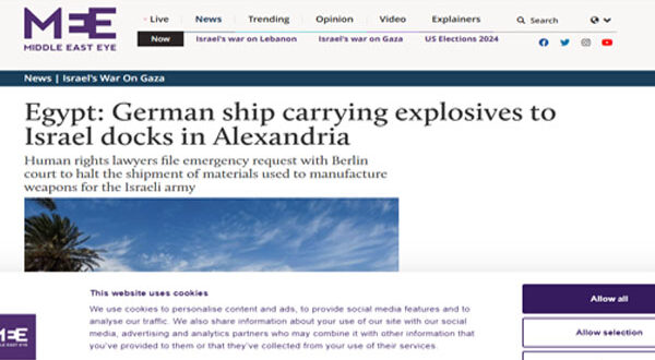 وقالت “رويترز” إن محامين قدموا التماسا إلى القضاء في العاصمة الألمانية برلين من أجل منع شحنة من المتفجرات العسكرية تزن 150 طنا تحملها سفينة الشحن الألمانية (إم في كاثرين)، التي يقولون إنها ستسلم إلى أكبر شركات توريد المواد الدفاعية في إسرائيل.