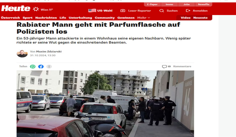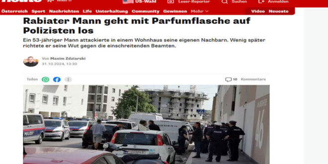 قام رجل يبلغ من العمر 53 عامًا، يوم أمس الأربعاء الموافق 30 من أكتوبر، على مهاجمة جيرانه في المبنى السكني الذي يقطنه بالحى العاشر – فيينا في الطابق العلوي من المبنى بسبب الازعاج الذي يصدر من شقتهم