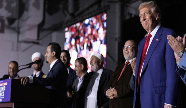 وظهر دونالد ترامب في مشهد غير عادي مع عدد من القيادات الإسلامية في ولاية ميشيغان، التي يرتكز فيها أكبر عدد من المسلمين، بالإضافة إلى أنها ولاية متأرجحة غير محسومة يُعول الديمقراطيون والجمهوريون على أصواتها.