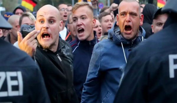 أنصار اليمين المتطرف خلال تظاهرات شرق ألماني