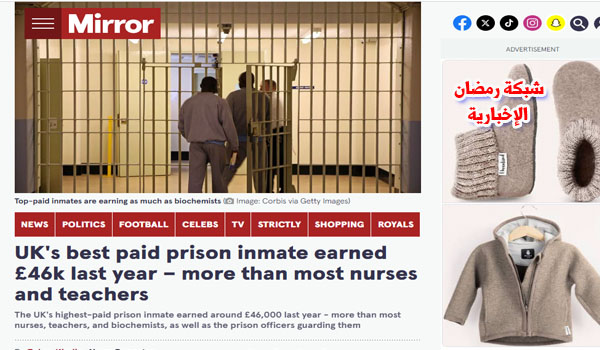 وحصل أعلى سجين أجراً في المملكة المتحدة على أجر صافٍ قدره 46005 دولارات العام الماضي، ما يعني أن راتبه الإجمالي كان حوالي 57640 دولارًا.