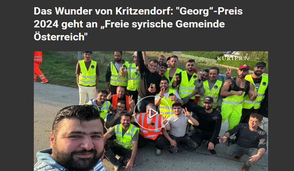 تقديراً لهذه الجهود، سيتم تكريم المجتمع السوري في الرابع من ديسمبر/كانون الأول في فيينا بجائزة جورج، التي تحمل اسم الناشط الراحل في مجال حقوق الإنسان جورج ليبيشزاك. يأتي هذا التكريم ليس فقط بسبب دورهم البارز في مكافحة آثار الفيضانات، بل أيضاً لالتزامهم بالاندماج وحقوق الإنسان في النمسا.