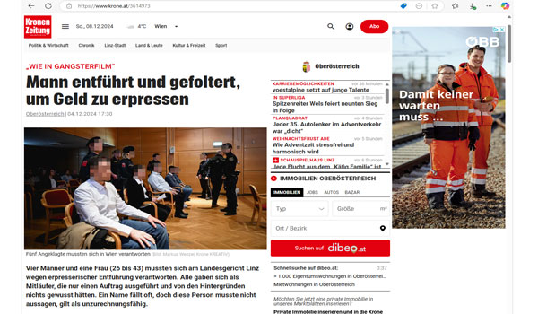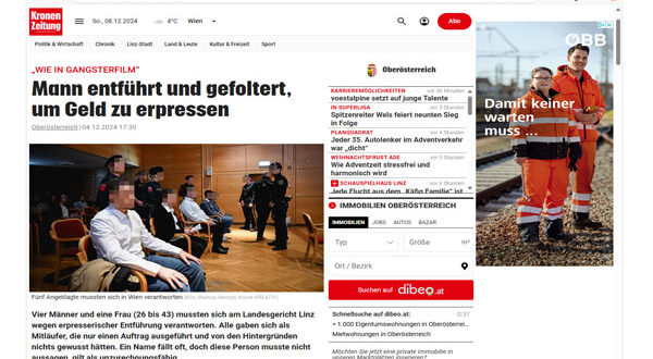 أصدرت محكمة لينز في النمسا العليا، حكمًا ضد خمسة متهمين بتهمة اختطاف رجل على مرأى من العامة في شارع بمدينة لينز، حيث تم اقتياده إلى شاحنة صغيرة وتعرض للضرب. كانت النيابة العامة قد اتهمتهم بالاختطاف الإرهابي، لكن هيئة المحلفين قررت في نهاية المطاف إدانة المتهمين بتهمتي الحرمان من الحرية والتهديد.