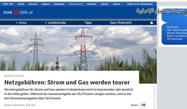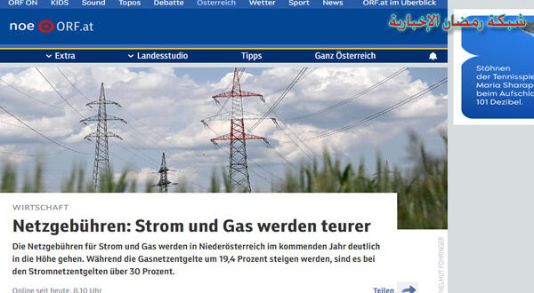 أعلنت هيئة تنظيم الطاقة في النمسا، ارتفاع فواتيراستهلاك الكهرباء والغاز اعتبارا من اول يناير المقبل.