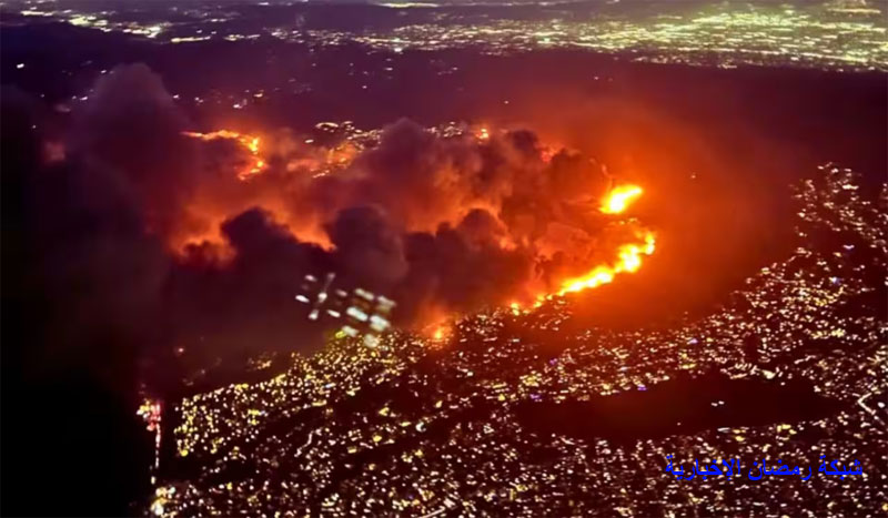 • على الرغم من تراجع قوة الرياح٬ ما زال انتشار النيران يتواصل في لوس أنجلوس التي غطى دخان كثيف سماءها. ومع ذلك، فإن الظروف لا تزال تثير القلق، مع الجفاف الشديد والرياح التي من المتوقع أن تعود لتشتد.