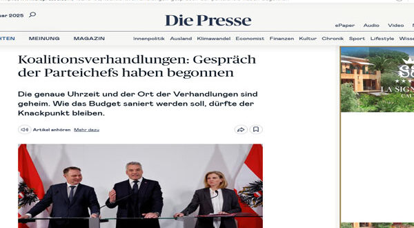 بدأت مساء اليوم الخميس الموافق 2 من يناير 2025 جولة جديدة من المفاوضات بين الأحزاب الثلاثة المرشحة لتشكيل الائتلاف الحكومى فى النمسا.