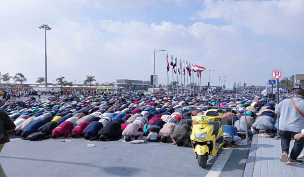 أدى الألأف من جمهور معرض القاهرة الدولي للكتاب، صلاة الجمعة في الساحة المتسعة المقابلة لأبواب وقاعات المعرض، حيث توافد عدد كبير منهم في اليوم الأول من المعرض، وقام عدد من الشباب بفرش سجاد أمام القاعات لتأدية صلاة الجمعة، قبل أن ينخرطوا في تأدية الصلاة، ثم معاودة تفقد ومعاينة أروقة المعرض.