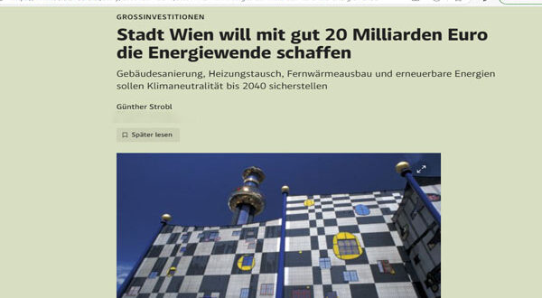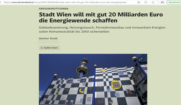 اعتمدت العاصمة النمساوية فيينا، خطة بقيمة 21 مليار دولار لإنهاء اعتمادها على الغاز الطبيعي المستورد، واستبداله باستخدام المضخات الحرارية والآبار وكفاءة الطاقة.