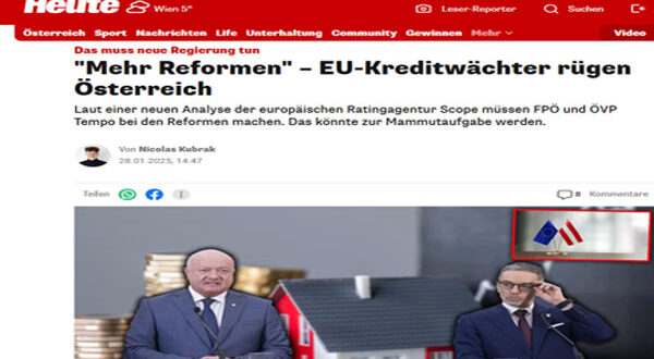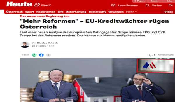 أكدت وكالة التصنيف الأوروبية (سكوب) اليوم الثلاثاء وجود حاجة ملحة للاصلاح المالي في النمسا ، وقد نشرت هيئة الإذاعة والتلفزيون النمساوي ÖRF مقتطفات منه انه على المدى الطويل يجب على النمسا مواصلة جهودها لتحقيق التوازن المالي والامتثال لقواعد الاتحاد الأوروبي المالية التي تحدد نسبة 3 بالمئة من الناتج المحلي الإجمالي كحد أعلى للعجز في الموازنة بينما تجاوزت النمسا هذا الحد إذ يتوقع ان يصل الى 9ر3 بالمئة خلال العام الحالي.