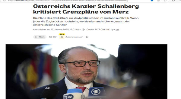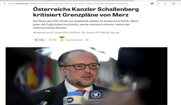 قوبلت خطط فريدريش ميرتس، مرشح المعارضة الألمانية المحافظة لمنصب المستشار المتعلقة بصد طالبي الحماية، على الحدود البرية لألمانيا، بانتقادات من جانب دولة النمسا المجاورة، لأنها تعتبرها مخالفة للقوانين الأوروبية.