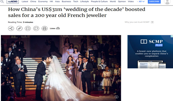 أحد أبرز هذه الفساتين كان الذي تألقت به الممثلة الصينية أنجيلا بيبي في حفل زفافها الأسطوري على الممثل الصيني هوانج شياو مينج عام 2015.