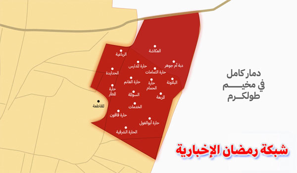 وخلال الأيام الماضية، هدم الاحتلال أكثر من 26 بناية في مخيم طولكرم، وتم تسويتها بالأرض، ضمن مخطط يهدف إلى فتح شارع يمتد من منطقة الوكالة إلى حارة البلاونة، ما ألحق أضراراً جسيمة بكل ما حولها من بنايات ومرافق.