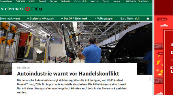 تواجه صناعة السيارات في ولاية شتايرمارك النمساوية تحديًا اقتصاديًا كبيرًا بعد إعلان الولايات المتحدة فرض تعرفة جمركية بنسبة 25% على قطع السيارات المستوردة، وهو القرار الذي من المتوقع أن يلقي بظلاله الثقيلة على الشركات النمساوية التي تعتمد بشكل كبير على تصدير مكونات السيارات إلى الأسواق الأمريكية عبر الشركات الألمانية.